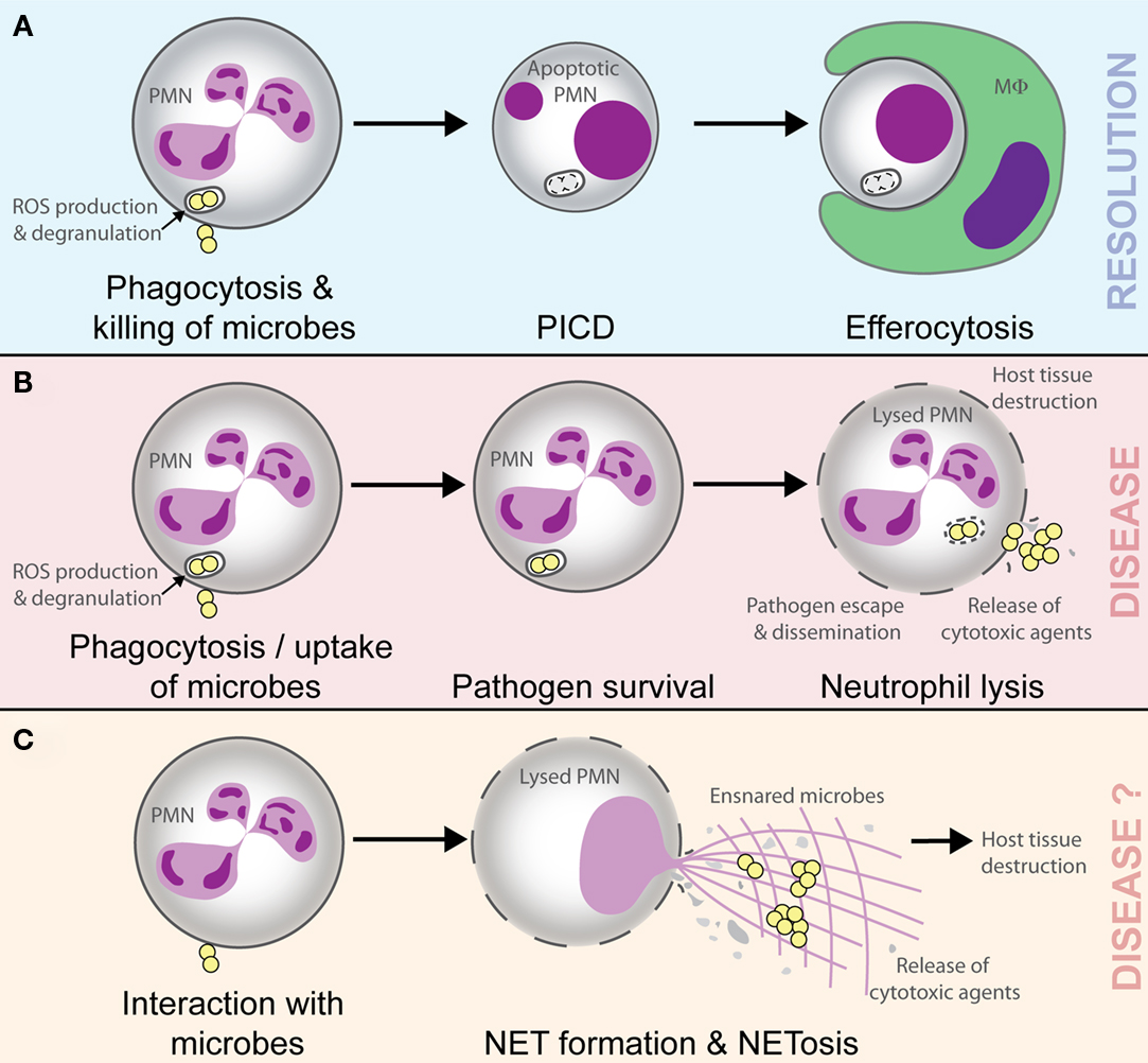 異嗜性白血球含有較少的溶菌酶(lysozymes) ,吞噬能力也比嗜中性顆粒白血球低,雖然病原體被聚集在一起,但分解能力低。因為這個原因,這些動物的膿是固體的。因為牠們的膿是固體,一般的抗生素很難穿透及清理,所以需要手術去清除感染。